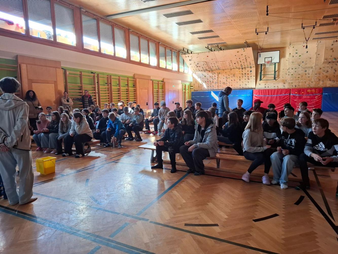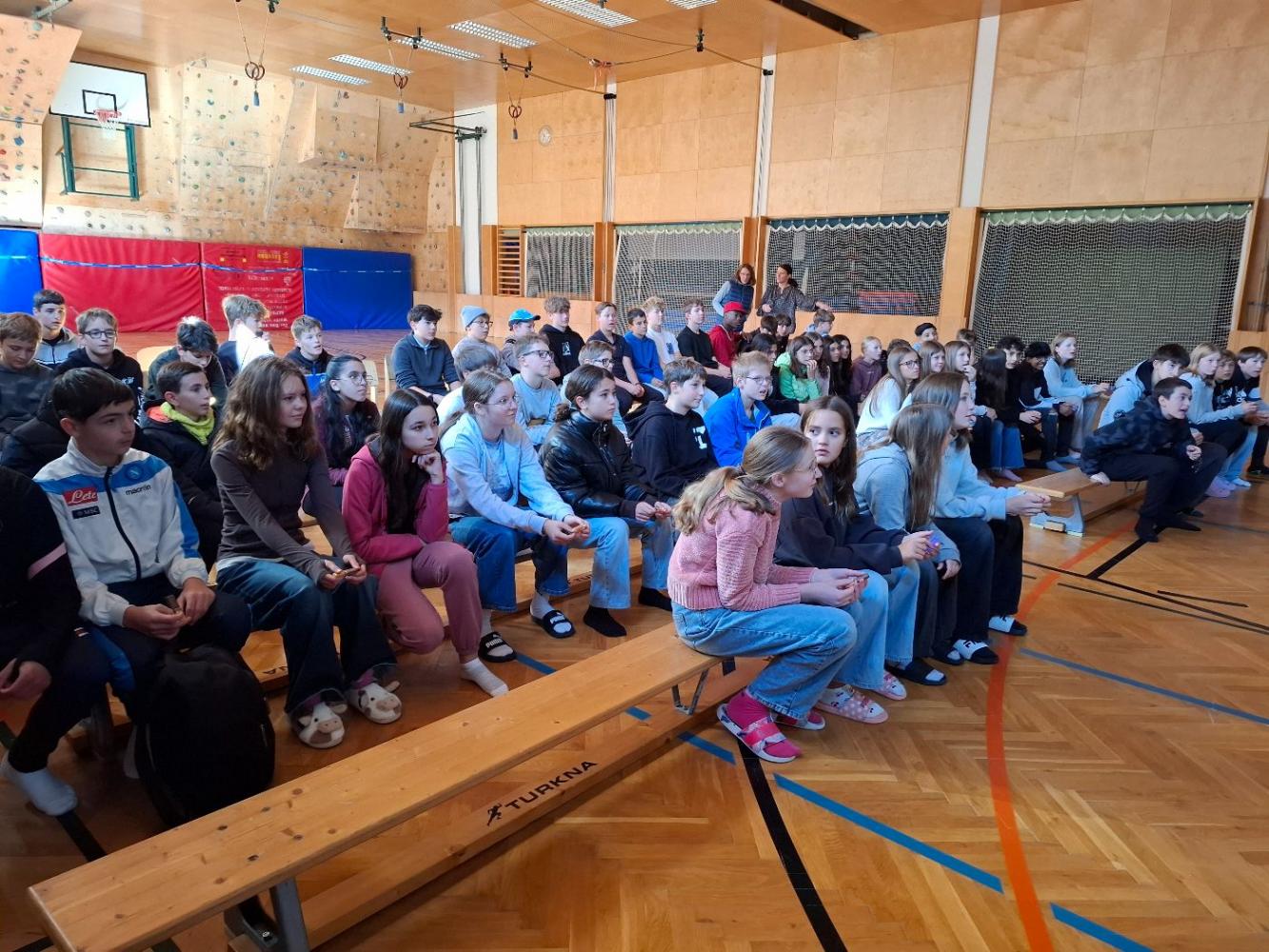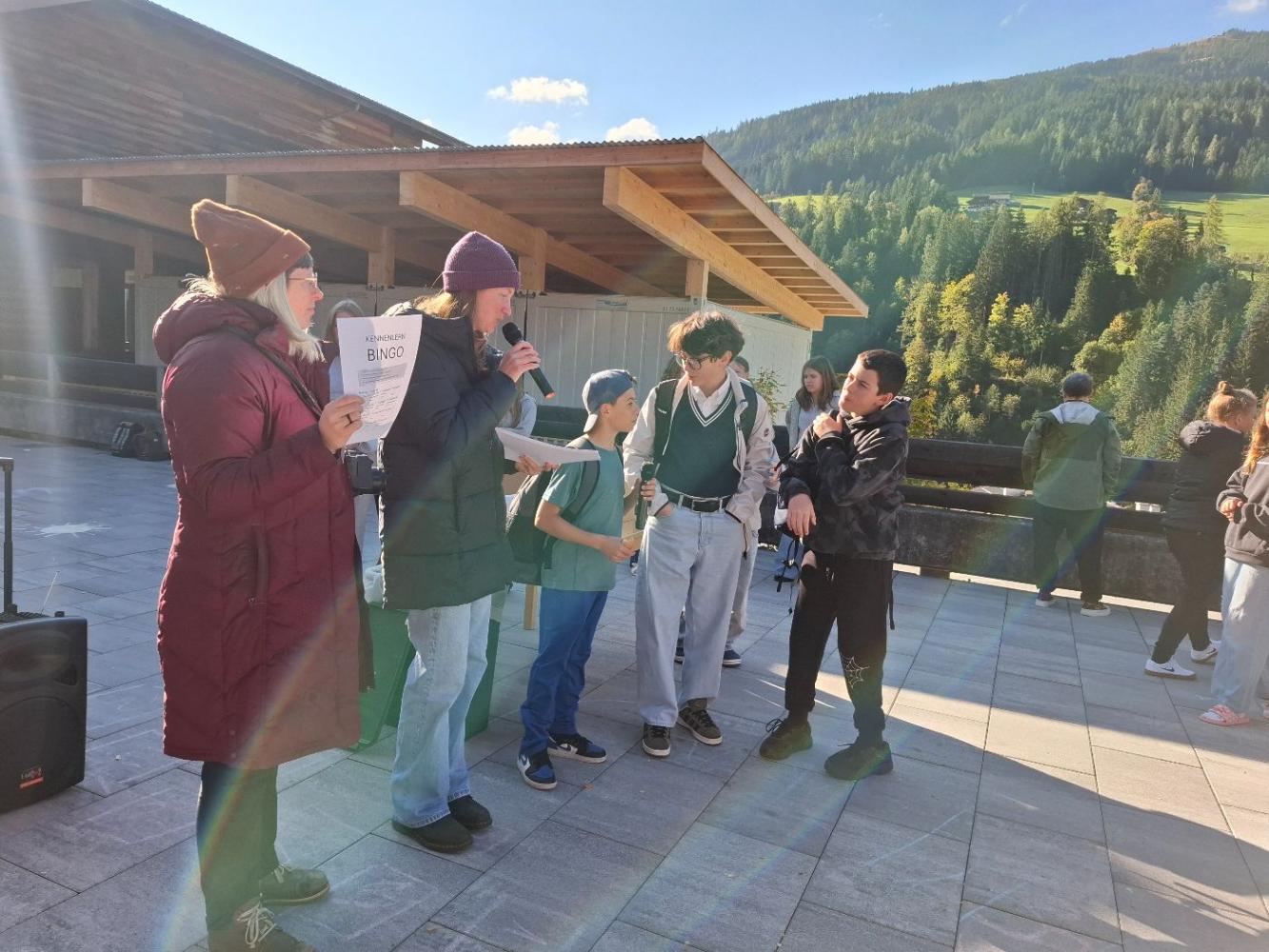Die Ergebnisse des Zukunftschecks wurden bei einem Schüler:innen-Austausch im Turnsaal präsentiert. Die Jugendlichen lernten einander kennen und die Sprache war nur am Anfang eine Barriere. Im Laufe des Tages wurden Telefonnummern ausgetauscht und Bekanntschaften geschlossen. Im Frühjahr besucht die 4a-Klasse die italienische Schule jenseits des Brenners. Das Klimabündnis aus Tirol und die Mobilitätsbeauftragten aus Südtirol waren die Initiatoren, finanziert wurde der Besuch von der EU.