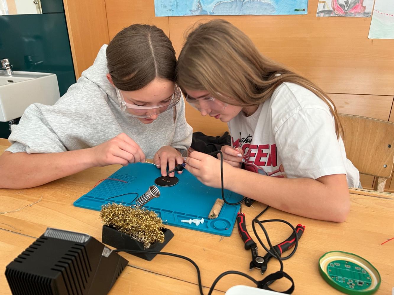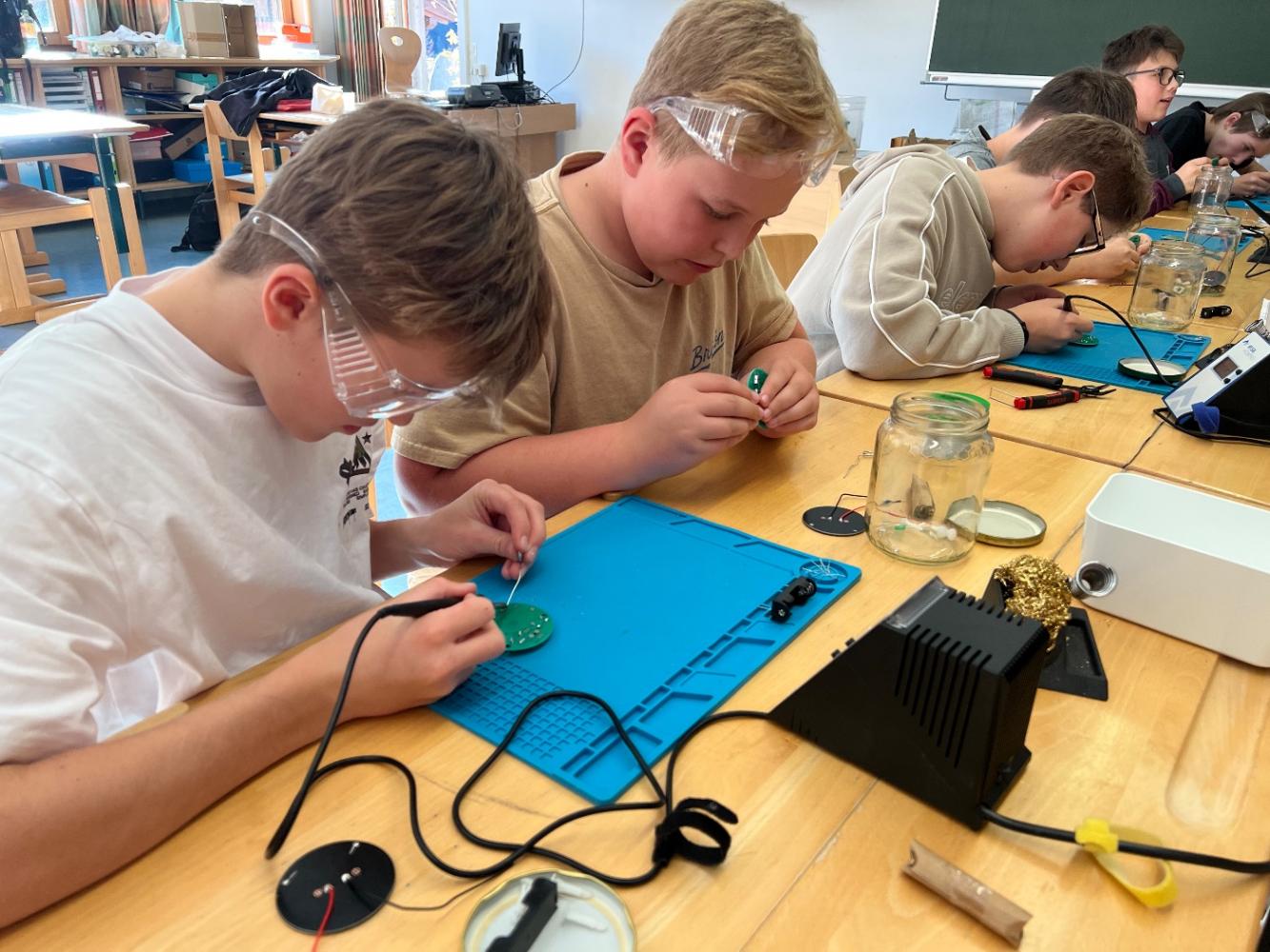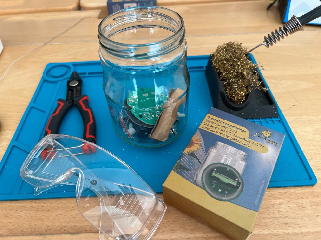 In einem dreistündigen Workshop mit DI Stefan Strappler vom fablab Innsbruck näherten sich die ÖkologInnen der 4a dem Thema "Solarenergie" ganz praktisch an. Aus Gurkengläsern und PV-Modulen wurden Solarlampen hergestellt, die alle Mitwirkenden begeisterten. Dabei mussten sämtliche Komponenten präzise verlötet werden. Gar nicht so einfach, doch am Schluss ging allen ein Licht auf. Ein großes Dankeschön an die KEM Alpbachtal, die diesen Workshop durch finanzielle Unterstützung für uns möglich machte!