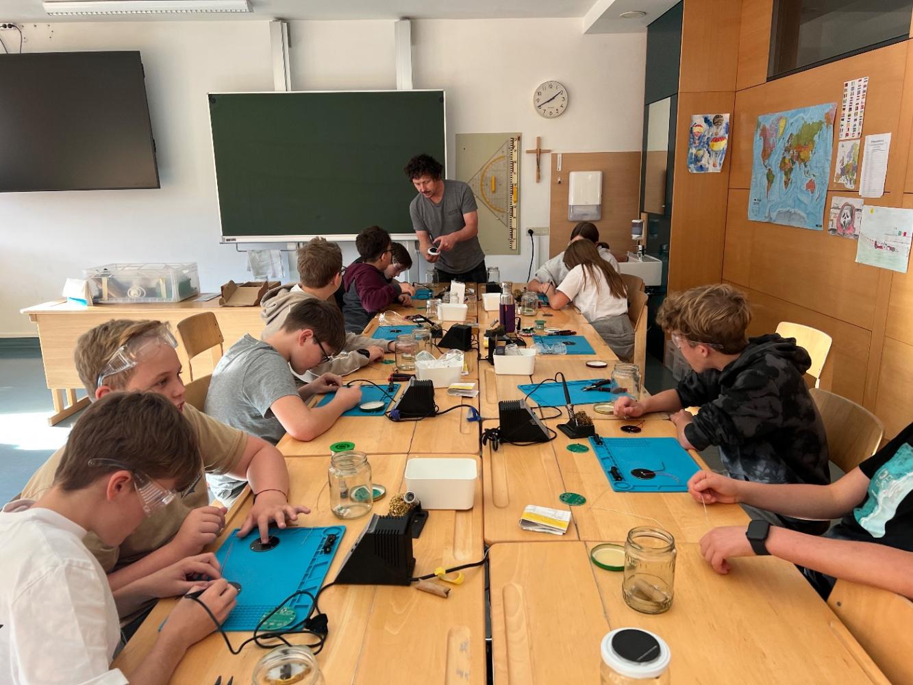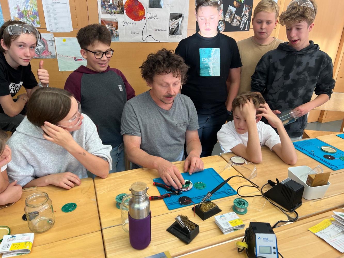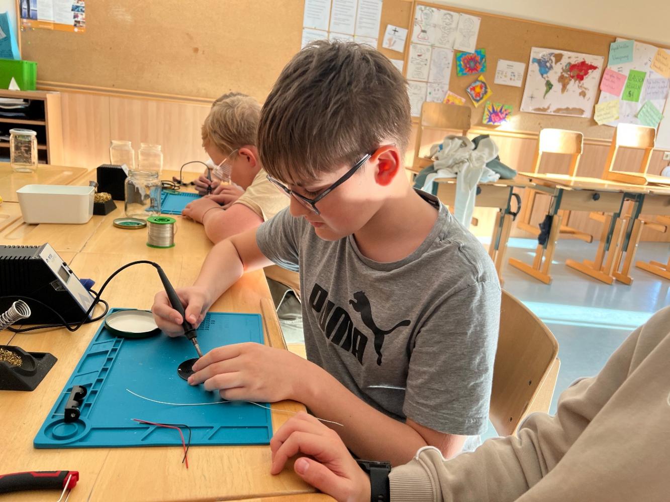 In einem dreistündigen Workshop mit DI Stefan Strappler vom fablab Innsbruck näherten sich die ÖkologInnen der 4a dem Thema "Solarenergie" ganz praktisch an. Aus Gurkengläsern und PV-Modulen wurden Solarlampen hergestellt, die alle Mitwirkenden begeisterten. Dabei mussten sämtliche Komponenten präzise verlötet werden. Gar nicht so einfach, doch am Schluss ging allen ein Licht auf. Ein großes Dankeschön an die KEM Alpbachtal, die diesen Workshop durch finanzielle Unterstützung für uns möglich machte!